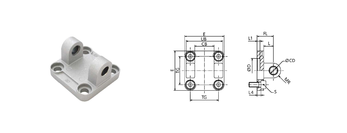 | Ø | Varenr. | TG | CB | UB | ØCD | FL | L | ØD | L1 | L4 | MR | E | S |