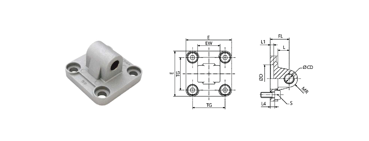 | Ø | Varenr. | TG | EW | ØCD | FL | L | ØD | L1 | L4 | MR | E | S |